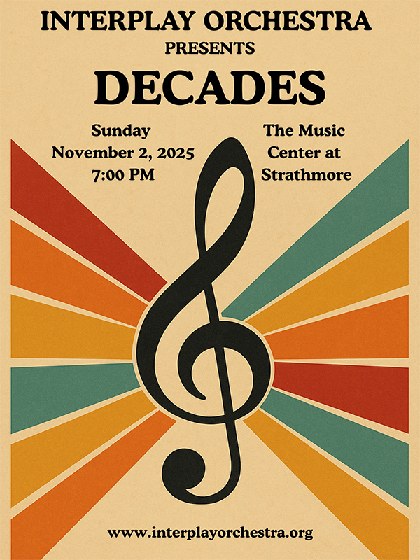 The interPLAY Orchestra is a 35-year old nonprofit music organization of adult musicians with intellectual, developmental, and other disabilities; playing alongside amateur and professional musicians, and high school and university students known as “Bandaides”. All perform together for the community in year-round concerts at the world-class Music Center at Strathmore. We feature a full orchestra, small ensembles, choral groups and soloists, working with percussion and other traditional instruments, and playing a variety of musical genres.